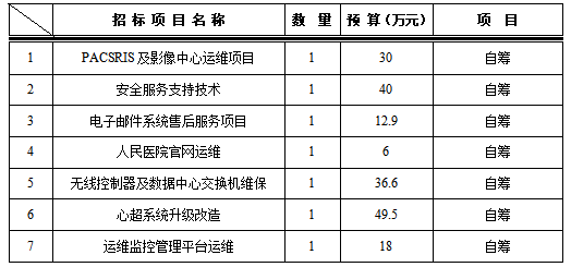 为满足临床科室需求,招标采购中心拟对以下信息项目进行院内招标采购,采购项目的内容及数量:
