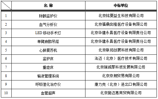 我院于2022年12月7日对以下医疗项目进行院内招标,中标结果如下: