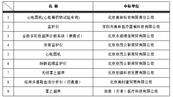 我院于2023年1月6日对以下医疗项目进行院内招标,中标结果如下: