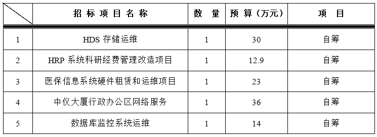 为满足临床科室需求,招标采购中心拟对以下信息项目进行院内招标采购,采购项目的内容及数量:
