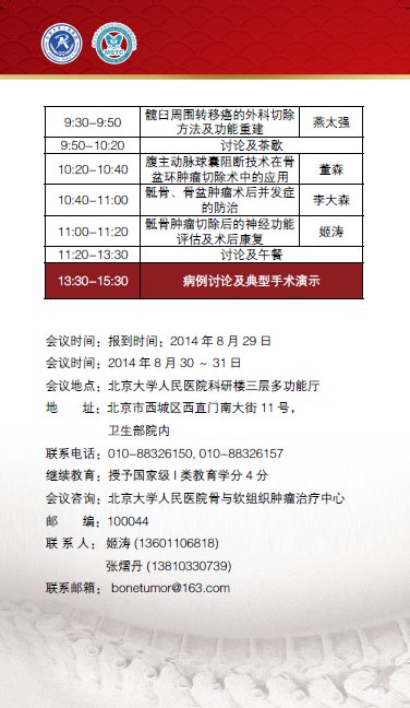 会议咨询: 北京大学人民医院骨与软组织肿瘤治疗中心 100044