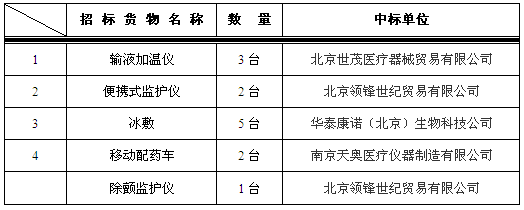 我院于2015年7月2日对以下设备进行院内谈判,中标结果如下: