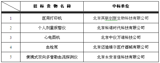 我院于2015年9月17日对以下设备进行院内谈判,中标结果如下: