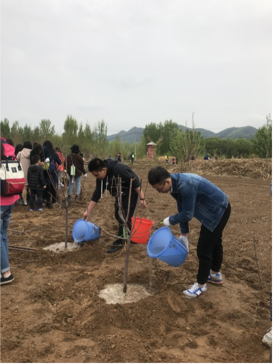 大家分为两个小组,肩扛铁锹、手拿树苗,来到了宽阔的地里。小组成员们团结协作,你一锹我一铲,不一会儿就将小树苗种入到泥土当中,每个人都为自己所种下的树苗写上了寄语。 植树活动中,不仅使自己的身心得到了放松,还让同事们更加和睦融洽。大家今天种下的每一棵小树,明年就会长成一片花海!今天党组织带领怀揣梦想的青年去植树,今后这些青年将继续为伟大祖国建设更多的青山。