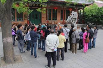 2014年4月19日,30余人一行在郁金香花的簇拥下到达来今雨轩,抬头是古朴的吊灯和天花板,低头是历经百年沧桑仍保存完好的地砖,耳边是李老师娓娓道来远在1915年筹建中央医院的人情故事,依稀可以看到那些仁人志士为时代进步、百姓康健、医学推广,拼尽全力的场景。