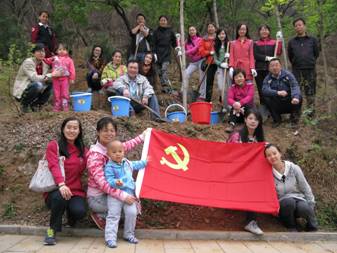 到达百望山森林公园,印入眼帘的是绿意浓浓的森林公园,心中亦油然增添了一种亲切感。鉴于大部分党员都是第一次参加真正的植树活动,并不了解其中的操作要领,为保证植树的成活率,首先由森林公园的管理技术人员给大家详细讲解了植树的要点,并亲自给大家做示范。之后大家2-3人一组在技术人员的监督指导下开始了热火朝天的植树活动。党员们很快就熟悉和掌握了植树过程,一丝不苟地认真操作。