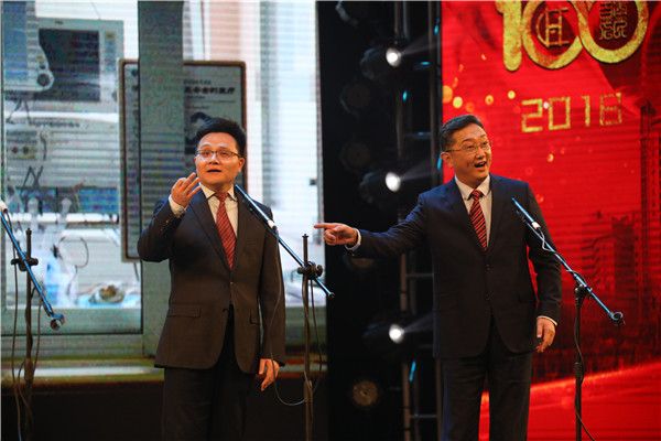 大会分为“百年新生命”、“百年新辉煌”、“百年新启航”三个篇章,回顾医院百年发展历程,共同为医院庆生,同时表彰2017年医院优秀员工和集体,叙亲情,谱未来,寄语明天。