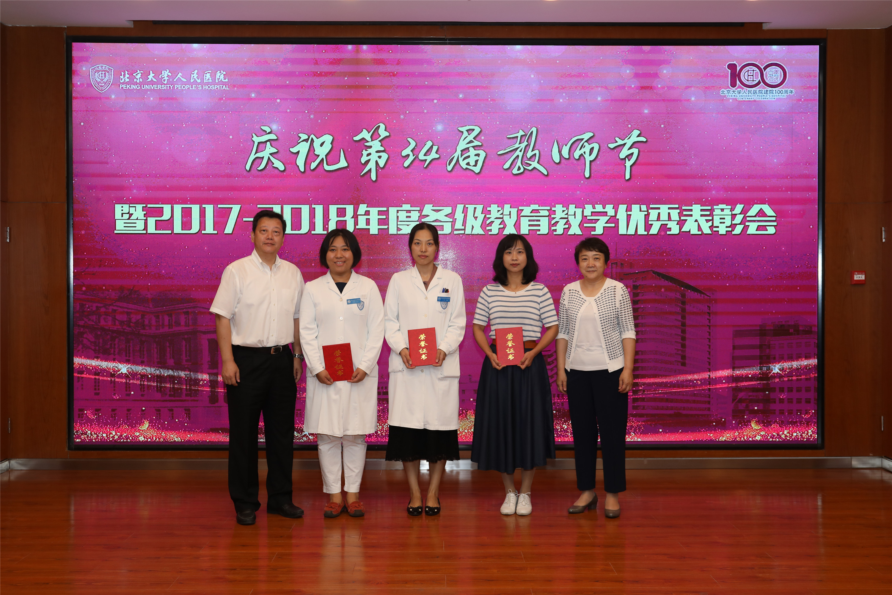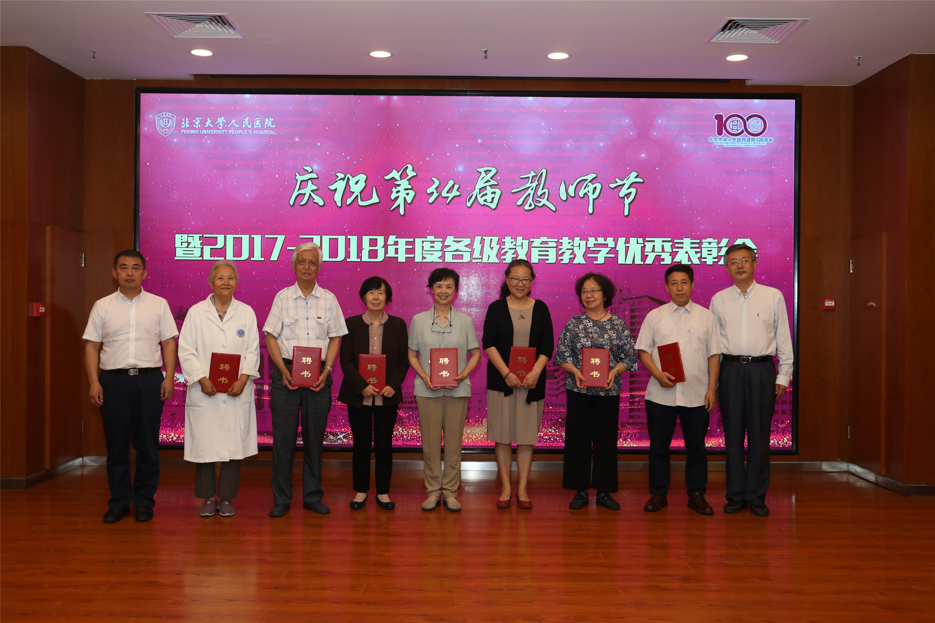 医院全体临床科室、医技科室、行政部门负责人,以及2017-2018年度北京市级、北京大学、北京大学医学部、人民医院各级各类教学奖项的优秀教师个人和集体代表莅临大会。表彰会由北京大学人民医院王建六副院长主持。