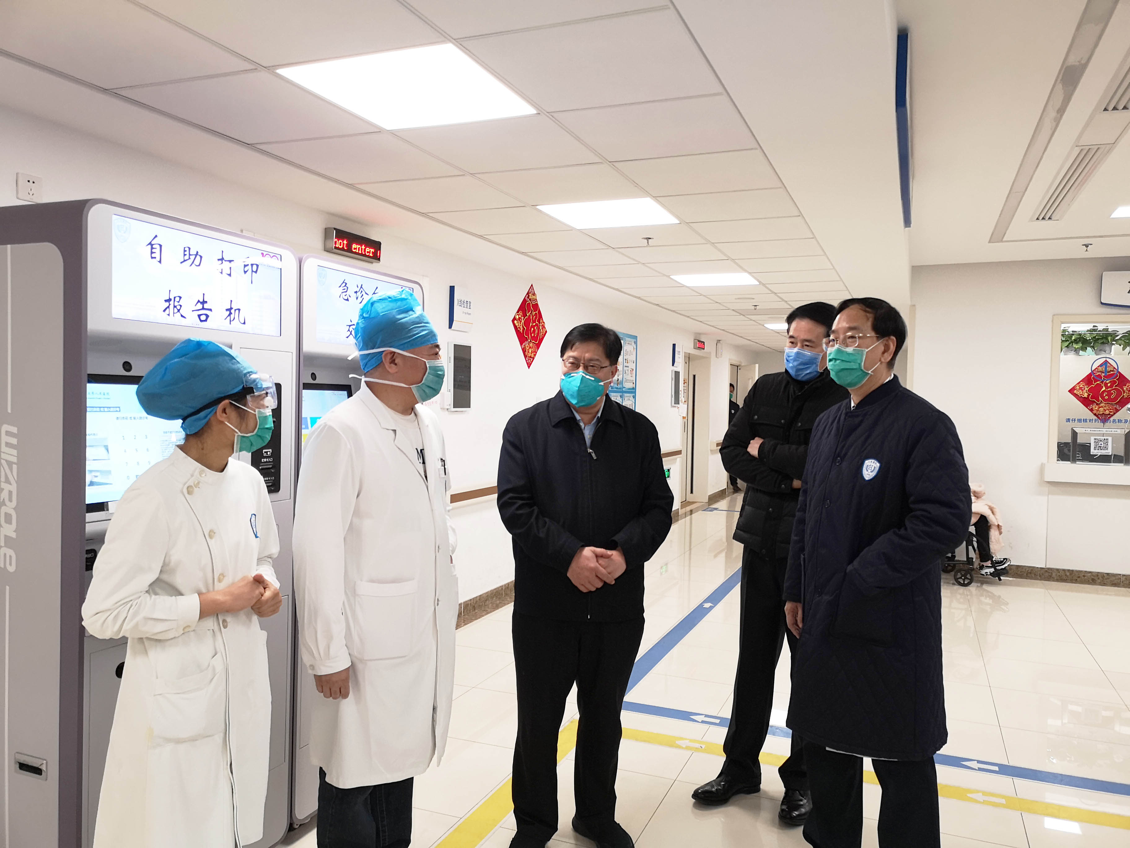 邱水平书记、刘玉村书记一行首先来到急诊,亲切慰问了工作在急诊一线的全体医务人员,听取了急诊科朱继红主任关于春节期间急诊工作情况的汇报,对大家春节坚守和辛勤付出表示感谢。