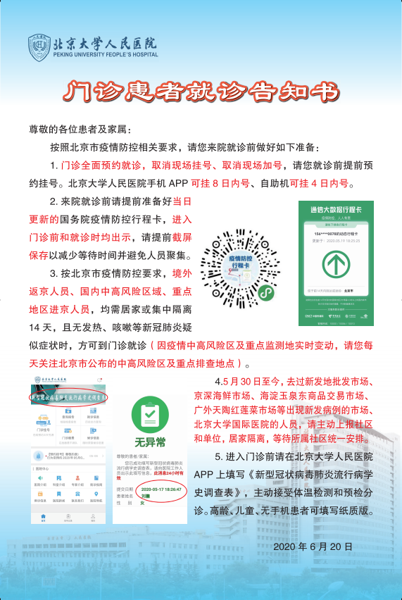 北京大学人民医院近期门诊患者就诊注意事项告知书