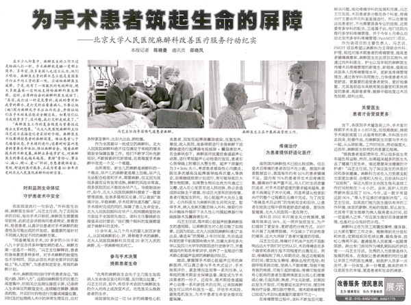 健康报:为手术患者筑起生命的屏障——北京大学人民医院麻醉科改善医疗服务行动纪实