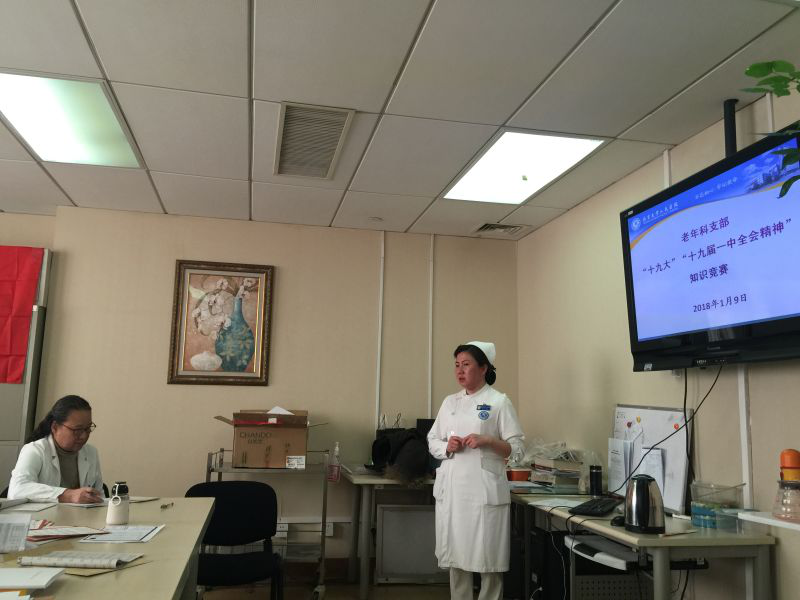 2018年1月9号,我们老年科党支部在示教室举办了“学习贯彻党的十九大和十九届一中全会精神知识竞赛”。老年科18名党员和2名共青团员参加了本次活动。