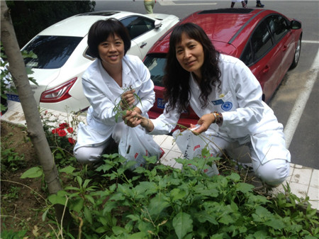 为充分发挥党员的先锋模范作用,从点滴小事做起认真实践社会主义核心价值观,2014年6月20日,北京大学人民医院中医科党支部组织党员开展中医科药植园除草活动。