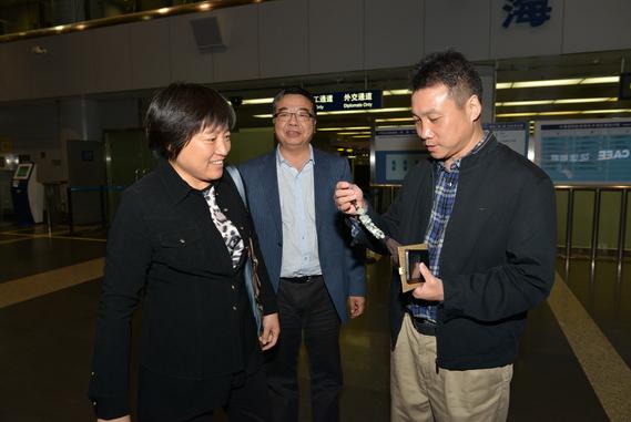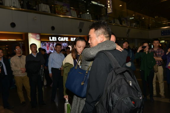 随着曹大夫即将步入闸口,一同送行的曹大夫的妻子和女儿终于在人群中控制不住留下眼泪,担忧、不舍、离别五味杂陈。曹宝平和家人深情相拥,面对妻子与女儿的依依惜别,“放心吧!我很快就会平安回来的!”曹大夫坚定说,让所有支持关心他的人们放心。