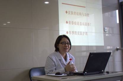 冬季,空气干燥,皮肤容易缺水,新陈代谢较为迟缓,皮腊腺和汗腺分泌也都减少,皮肤容易变得干燥皲裂,甚至眼周出现很明显韵小皱纹,冬季皮肤保养变得尤为重要。讲座中,李大夫先从大家最为关注的痤疮问题讲起。痤疮,俗名青春痘,是皮肤科常见疾病,好发于青春期的男女,是毛囊皮脂腺的慢性炎症。值得注意的是,现在还出现了“高龄痤疮”,30岁以上的人群,特别是女性成为新的高发人群。痤疮的原发病理生理因素包括雄激素、皮脂过度分泌、毛囊上皮的异常角化、痤疮杆菌的增殖、炎症和免疫反应等,痤疮的治疗即应针对这些因素才能得到满意的疗效。之后,李大夫又根据北京冬季气候的特点,为大家介绍了冬季护肤的注意事项,如在选择清洁护肤品时,不要选用碱性强的化妆品和香皂等,以免抑制皮脂和汗液的分泌,使得皮肤更加干燥。同时,她介绍了不同的保湿剂,供大家根据自己的皮肤特点进行选择。最后,她还指出了人们容易走进的误区,忠告大家冬季洗浴忌太勤、忌水过烫、忌揉搓过重、忌肥皂碱性太强,不然极容易破坏皮肤表层原本不多的皮脂,让皮肤更为干燥,因而也更易发痒、皲裂。在整个讲座过程中,常有听众连连点头,表示讲的知识非常实用。