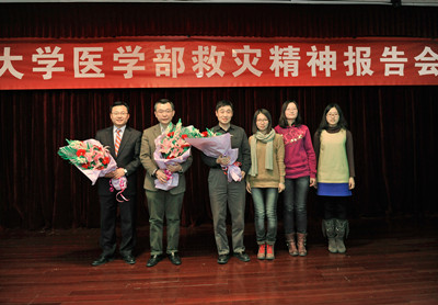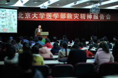 2013年12月5日晚,北京大学医学部救灾精神首场报告会在逸夫楼报告厅举行。会上,北京大学人民医院重症医学科主任安友仲教授作了题为《心·术·职·责——做一个“有用”的好人》的专题报告,与大家分享了他参与医疗救援的经历以及对医生职业精神的深刻思考。