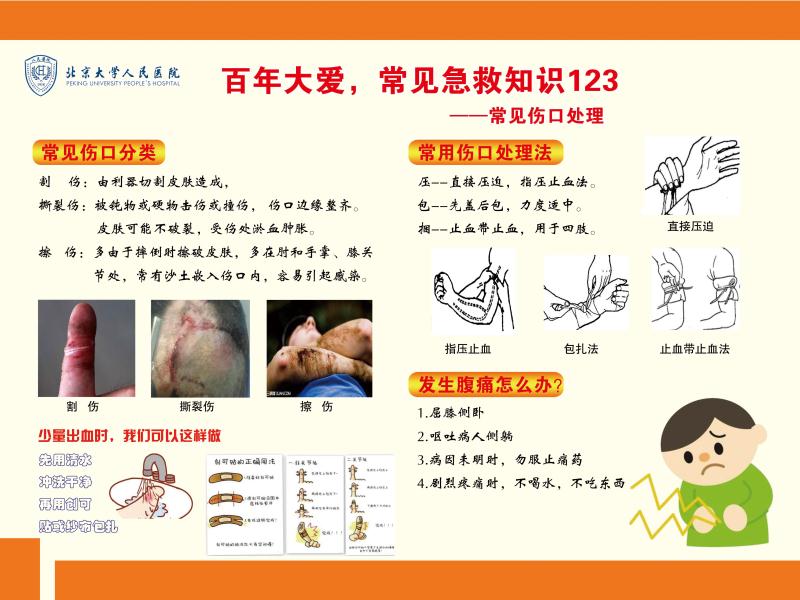 余剑波副主任医师从事急诊工作多年,积累了丰富的临床经验,具有很高的理论水平和精湛的医疗技术。此次讲座从4方面进行培训:心肺复苏、气道梗阻、创伤出血伤口的简单处理、烧伤处理原则。他通过幻灯和临床实例紧抓重点,与听众展开互动,其幽默风趣的授课风格引起了听众的共鸣,现场气氛活跃,不时传来阵阵笑声。心肺复苏一直被公认是最为重要的急救手段,在黄金时间内正确施救可以大大提高挽救生命的概率。当我们遇到呼吸、心跳骤停的患者时,如何准确判断并施救,就显得尤为重要。余剑波副主任医师强调,心肺复苏是一个生存链,现场施救很重要。他详细讲解了心肺复苏的3个环节——胸外按压、开放气道、人工呼吸的动作要领,并使用模拟人进行现场演示。因异物导致气道阻塞是常见的急诊问题。遇到气道阻塞(比如吃东西时,食物进入气管)的患者时,可以对患者实施海姆立克腹部冲击,即一手握成拳头,放在患者的上腹部。救助者站在患者身后,另一只手环住患者,再用力的进行腹部冲击式急救,以帮助患者咳出异物。正确进行创伤止血是非常实用的急救处理方法,余剑波副主任医师通过一幅幅图片告诉大家如何识别伤口类型,以及止血的“秘诀”——按压动脉的近心端,可以有效止血。在讲到烧伤的处理原则时,他详细描述了不同烧伤度数的处理方式,以及如何将烧伤的伤害降到最低。“紧急救护”这样一项关乎生命安全的沉重话题,在余剑波副主任医师深入浅出地讲解下变得通俗易懂。