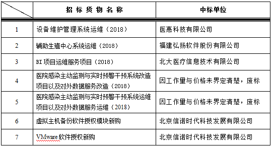 我院于2018年6月20日对以下信息系统项目进行院内谈判,中标结果如下: