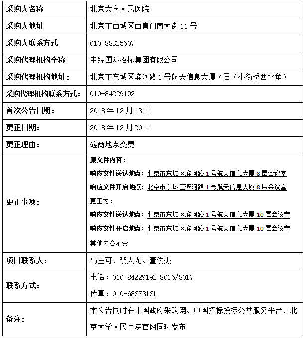 北京大学人民医院西直门院区地下电缆和部分配电设备改造工程(二次)更正公告