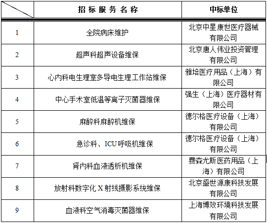 我院于2019年12月27日对以下维保进行院内谈判,中标结果如下: