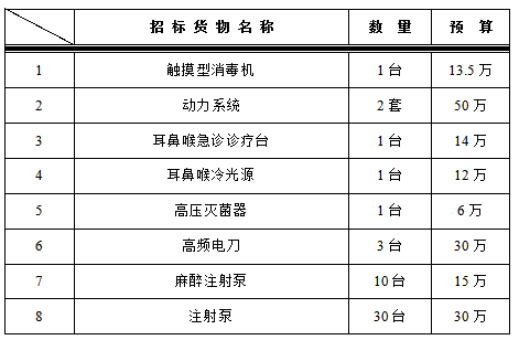一、为满足临床科室需求,设备处拟对以下设备进行院内招标采购,采购项目的内容及数量: