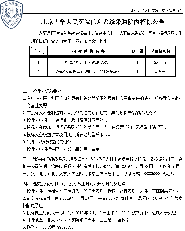 信息系统采购院内招标公告