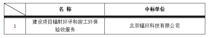 我院于2021年10月21日对建设项目辐射环评和竣工环保验收服务进行院内招标,中标结果如下: