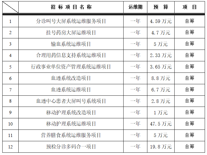 为满足临床科室需求,医学装备处拟对以下信息项目进行院内招标采购,采购项目的内容及金额见下表,招标要求详见附件: