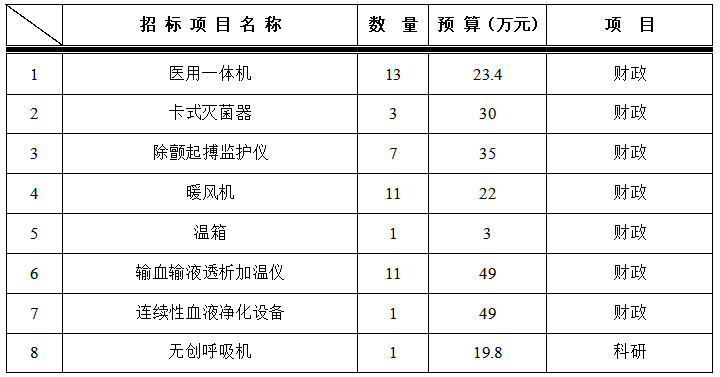 为满足临床科室需求,招标采购中心拟对以下设备进行院内招标采购,采购项目的内容及数量: