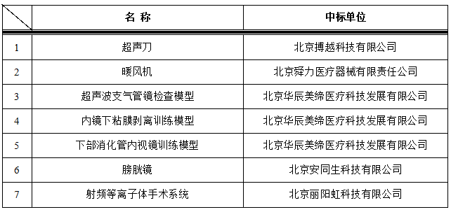 我院于2022年11月11日对以下医疗项目进行院内招标,中标结果如下: