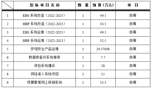 为满足临床科室需求,招标采购中心拟对以下信息项目进行院内招标采购,采购项目的内容及数量: