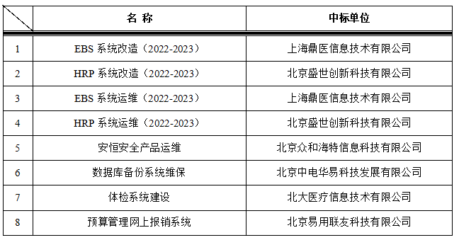 我院于2023年3月16日对以下信息项目进行院内招标,中标结果如下: