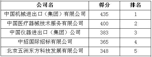 根据评分结果,决定选取排名前两家:中国机械进出口(集团)有限公司、中国医疗器械技术服务有限公司,作为我院2015年进出口代理公司。如涉及到特殊放射源采购,则按排名选取有相应资质的代理公司。