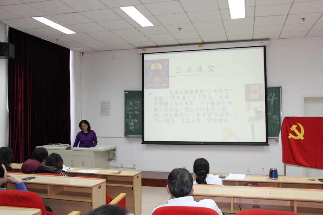 阳春三月,正值十二届全国人大二次会议和全国政协十二届二次会议开幕之时,为响应两会精神,进一步加强基本理论知识的学习,深入理解中国共产党的统一战线方针政策,北京大学人民医院机关四支部于2014年3月6日中午召开党支部活动。此次支部活动除了按照惯例传达党委工作,进行下一阶段工作安排外,为进一步加强党员同志对于时事政治,特别是统战工作的了解,特邀请了医院妇科肿瘤研究室的昌晓红副研究员(所在党派为九三学社)为支部全体党员同志进行了主题为“统一战线与各民主党派介绍”的报告。
