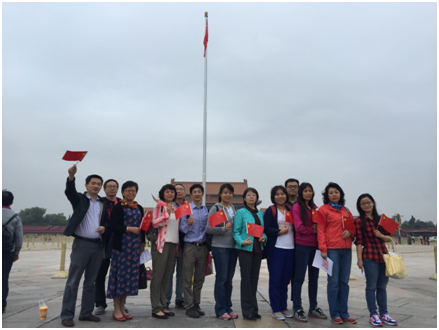 站在雄伟的天安门广场,每一名党员见证着祖国的一天天繁荣,一点点强大,国际地位的提升。站在历史长河中,作为中共党员,肩上的责任重大。紧紧跟着党中央,在习总书记的领导下,脚踏实地的认真贯彻党的三严三实和中央八项规定,加强组织建设,提高党员思想教育,严于律己,保持共产党员的先进性,是每一个支部和党员将要做好的长期工作。