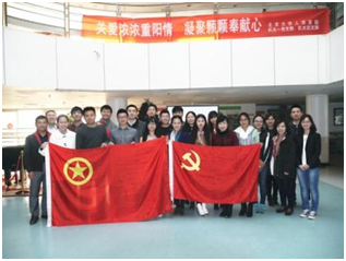 2015年10月27日下午,北京大学人民医院机关一党支部联合机关团支部共同前往北京市西城区银龄老年公寓,组织开展了“关爱浓浓重阳情 凝聚颗颗奉献心”的主题活动,参加此次活动的23名党员和团员为银龄老年公寓的30多位老人送去慰问和祝福。
