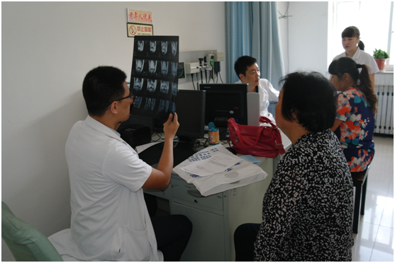 听说有人民医院关节科的专家要来义诊,很多患者都早早地拿着X光片来到现场排队,急切地等待着专家对自己的病情进行诊断,为自己提供合适的治疗方案。看到一张张满含期待的脸,关节科的3位专家党员不顾路途劳累立即投入到义诊工作中,细致地检查身体,耐心地答疑解惑,给每个病人都给出了最专业的建议。支部护士党员也耐心地为到场的村民进行健康宣教,告诉他们如何在生活中保护关节,减少关节磨损,提高生活质量;同时,也为他们提供了测血糖、血压等服务,忙碌却又和谐。
